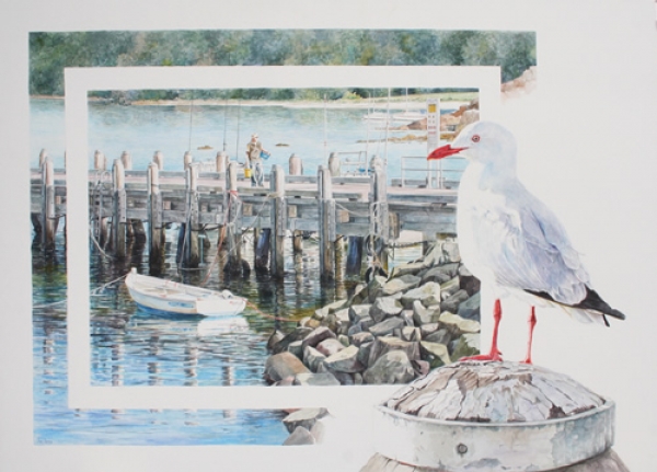 Seagull at Wharf w/c 102 x 85 $2800